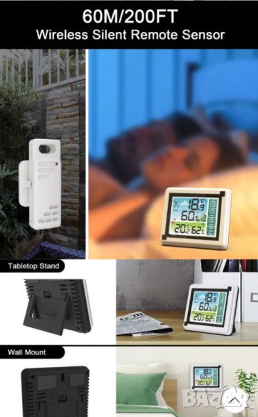 Термометър с влагомер безжичен. Метеостанция Вътрешен/външен термометър с влагомер. Монинитортор