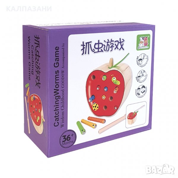 Образователна игра от дърво - Catch the Worмагнитен риболов "Червеи" под формата на ябълка 4111