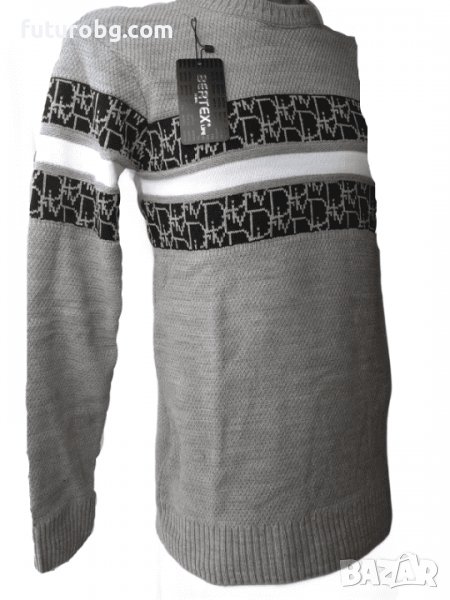 Плетен сив пуловер със черно-бял акцент , като снежинки