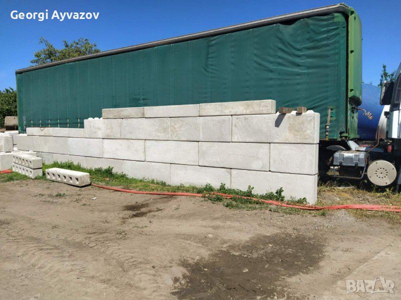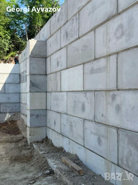 Бетоновите блокове са изпълнени с бетон/циметн/пясък и филц. В тях