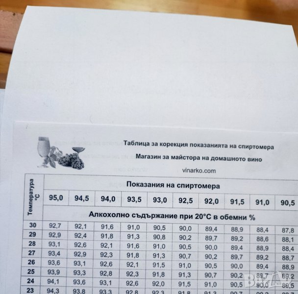 Спиртомер 36см с термометър и таблица за корекция → Обява 38703298