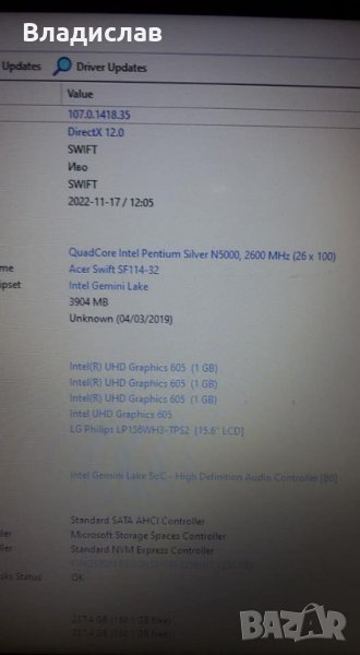 Acer Swift 1 SF114-32-P80G работещ на части → Обява 38703620