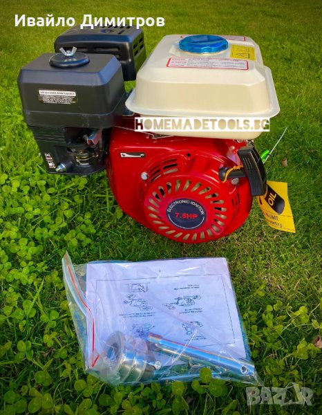Четиритактов бензинов двигател 7.5 Hp с въздушно охлаждане, предназначен за прикачване към мотофрези, мотокултиватори, мотоблокове, водни помпи, генератори за ток и др. техника. Датчик за маслото - двигателя изгася при ниско ниво.