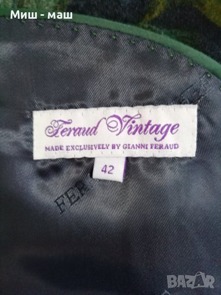 Снимки - основна ,2,3,4,5 и 6 - от колекция Feraud Vintage , размер 42 / М , кадифено сако в комбинация от тъмната гама на синьо и зелено на цветя . Цена 60.00 Euro