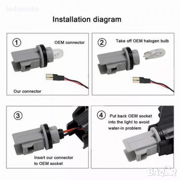 Списъкът включва: 2 x LED странична габаритна светлина кристални (ляво и