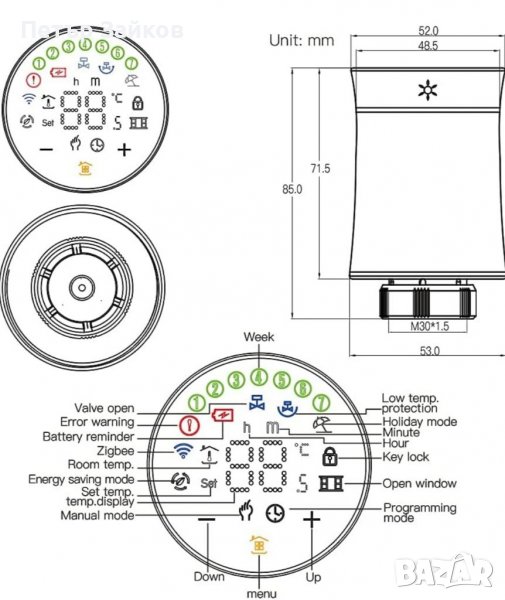 Това новоразработено задвижване на вентила е оборудвано с мини корпус и ясен LCD екран за прецизно регулиране на стайната температура и максимален комфорт. Осигурява изключителен контрол на температурата и пестене на енергия, като по този начин удължава живота на батерията. Този контролен нагревател е подходящ за апартаменти, търговски центрове, хотели, контрол на температурата и стайна температура. Съвместим е с хъб Tuya ZigBee Wireless Gateway. bale ii, веднага щом се интегрира в мрежата, може да се управлява дистанционно заедно с други смарт устройства Tuya. Той предоставя набор от програмируеми настройки, включително режим на ваканция, 5+2, 6+1 и 7-дневни планове, с 6 периода за по-добро прилягане.