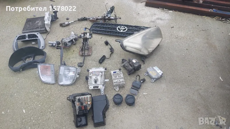 Имам и други тойоти на части.ЦЕНИ- фар-100,капак преден-180,калник-80,халоген-50,решетка -50,стоп-100,огледало-80,преден панел-150,греда-80,казанче чистачки-50,моторче чистачки-50,салон без забележка- 200,волан-80,бег на волана-60,лост мигачи,чистачки-80,гуми с джанти-200,компресор климатик-200,генератор-100,кутия въздушен филтър-80,компютър-200,врати оборудвани-200,скоростна кутия-450,раздатка-250,рейка от десен волан-150,пружина-60,преден мост-200,резервоар-200.Налично е всичкоСъединител нов,дискове,спирачни апарати,амортисьори,полуоски.Повече информацоя на посочения номер