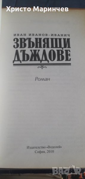 "Звънящи дъждове" разчупва познатата схема на нашия исторически роман. Двама братя почват своя бунт като хайдути, създават малка чета, после попадат в Легията на Раковски, където са Ильо войвода и Левски; скитат из хъшовския Букурещ, изстрадват великата априлска епопея и стигат до Освобождението като руски офицери. Своеобразен екшън, романът на Иванич показва събуждането на българина от петвековния кошмар на робството, духовното му съзряване и готовността му да умре, но да бъде свободен.