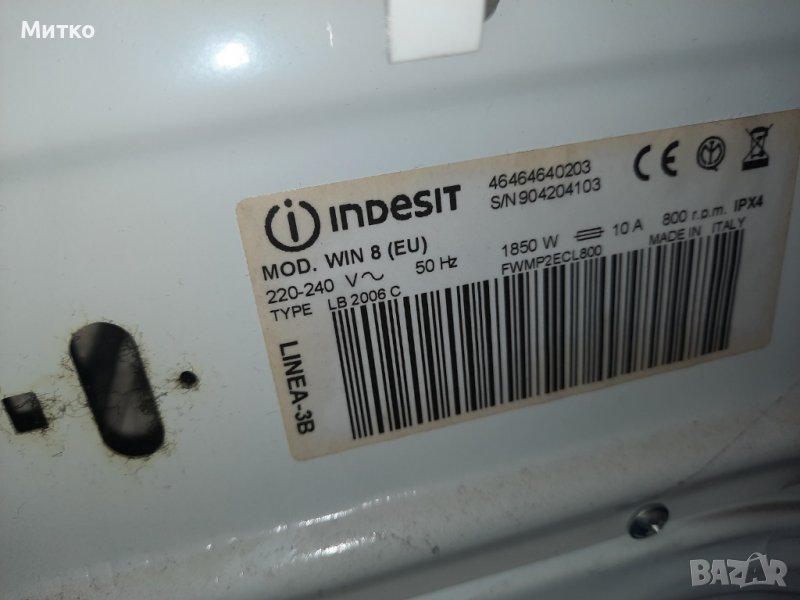 Пералня Индезит Indesit модел win8 за части → Обява 38719331