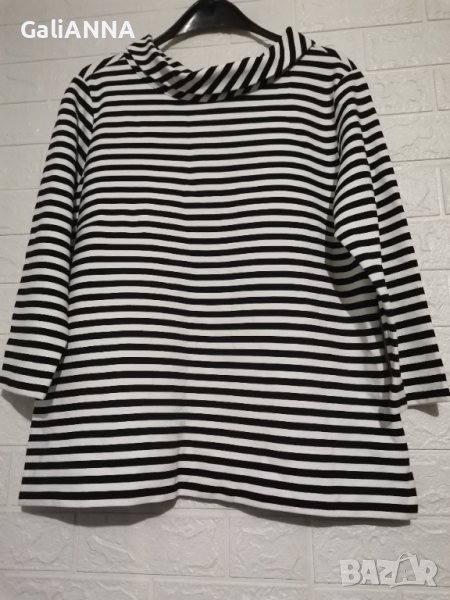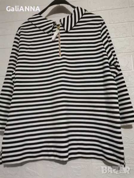 ЕЛЕГАНТНА И СТИЛНА ТУНИКА РАЕ В ЧЕРНО И БЯЛО, РАЗМЕР 2XL, С ЕФЕКТНА ЯКА И ЖЕЛЕЗЕН ЦИП НА ВРАТА