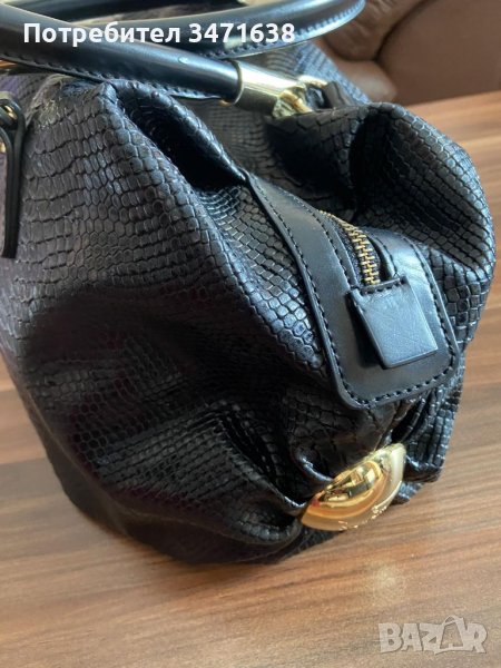 Черна чанта тип хобо. Носена няколко пъти в отлично състояние със златисти елементи. С три отделения.