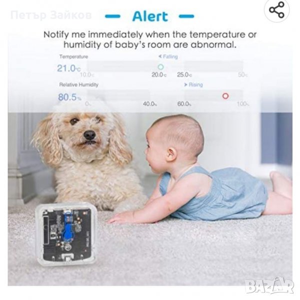 Безжичният сензор за температура и влажност на Meross, термометър и хигрометър за стаи, на закрито, вино, домашни любимци, баня, кухня и мазе Съвместим с приложението Meross