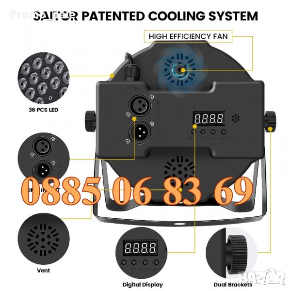 - Светлинни режими: автоматичен, под такта на музиката, DMX512, Master-Slave.