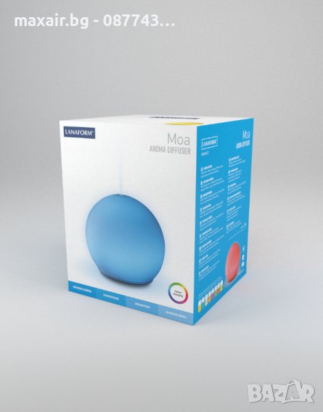 Арома дифузер МОА създава здравословна и отпускаща атмосфера. Подходящ е за всеки интериор. Сменяйки цветовете си, Moa излъчва и деликатна, приятна светлина, която в комбинация с аромата на етерично масло създава перфектната атмосфера за почивка.