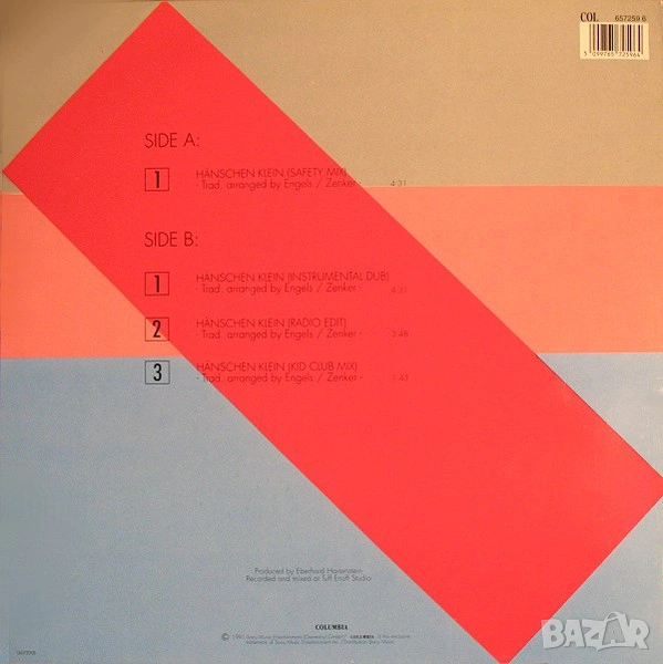 Грамофонна плоча на Hans K. – Hänschen Klein 12" сингъл Germany в отлично състояние, но обложката е била залепнала за друга обложка и има 10 см обелено. Цена 1.00 евро.