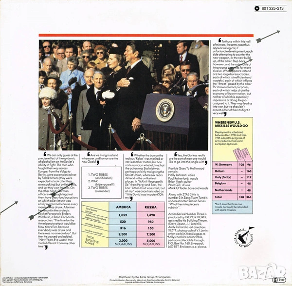Грамофонна плоча на Frankie Goes To Hollywood ‎– Two Tribes - 12" сингъл, Germany, в отлично състояние на плочата VG+ и много добро състояние на обложката VG. Цена 3.00 евро.