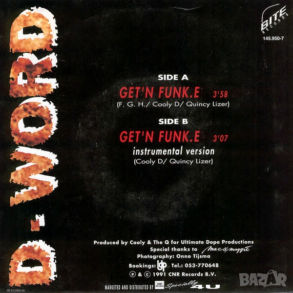 Грамофонна плоча на D-Word – Get'n Funk.E, Холанд 12" макси сингъл в много добро състояние. Цена 2.00 евро.