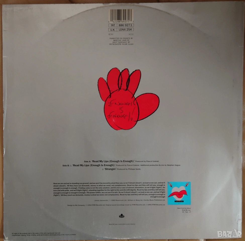 Грамофонна плоча 12" сингъл на Jimmy Somerville – Read My Lips в отлично състояние. Цена 3.00 евро.