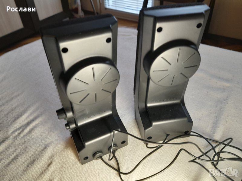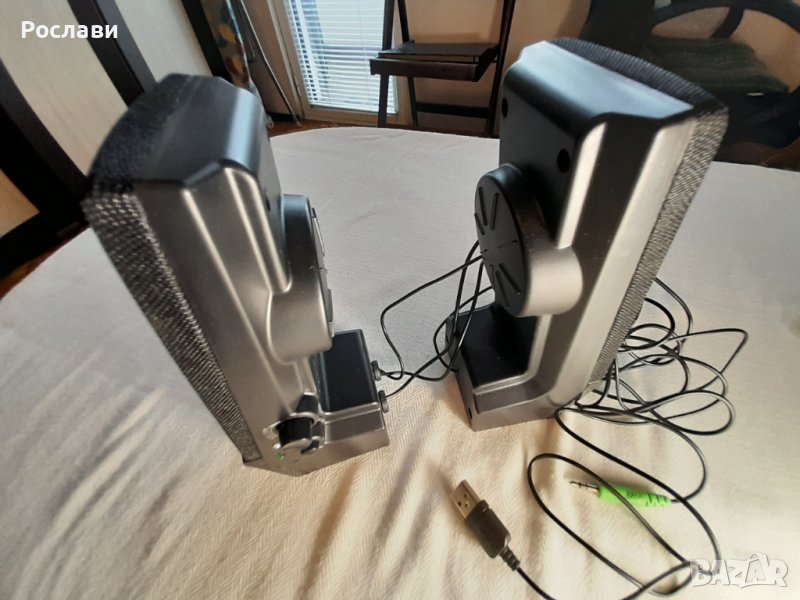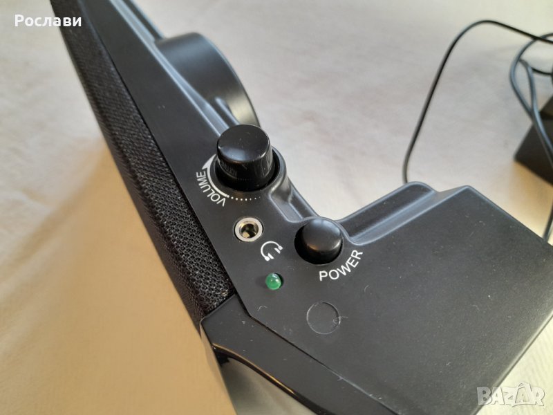 Захранване от USB и с аудио жак. Има бутон странично на едната колонка за включване с индикатор, потенциометър за усилване и бук-са за слушалки.