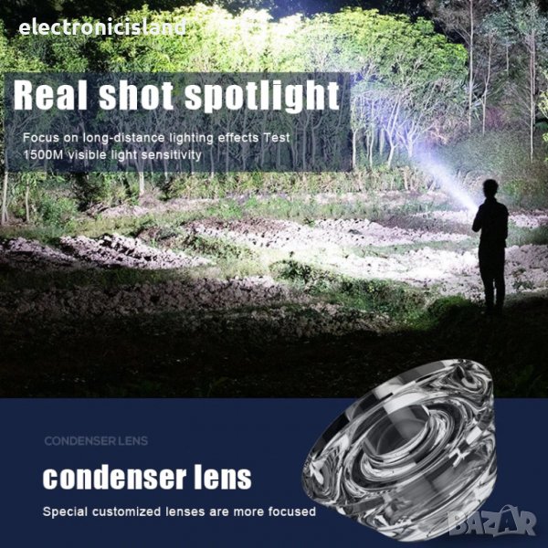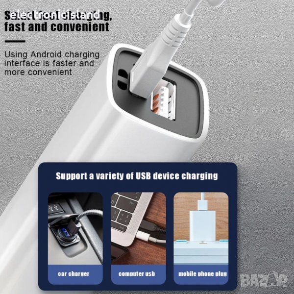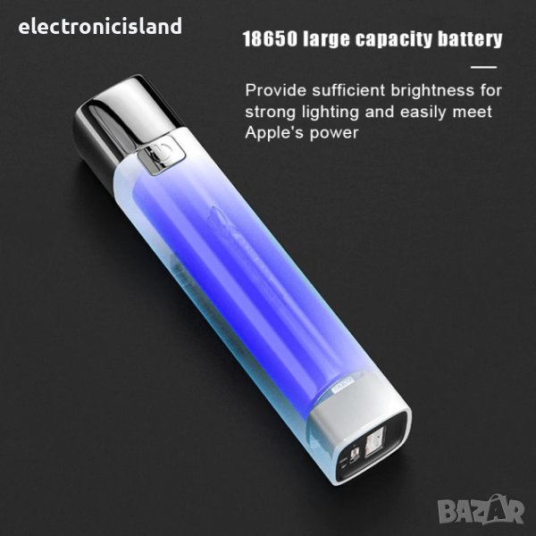 Ново 2 В 1 ярко LED фенерче с 1200 mAh външна батерия с 3 режима и USB кабел за зареждане