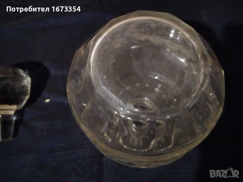 Гарафта е великолепна стара с инкрустации много тежка може да е кристална ,и четири великолепни чаши, има и пета но е счупена( последната снимка) но има и една другата предпоследната снимка това е това намерих в бюфета на баба цена85,00лв за всичко (гарафа +4чаши +една счупена +една друга)