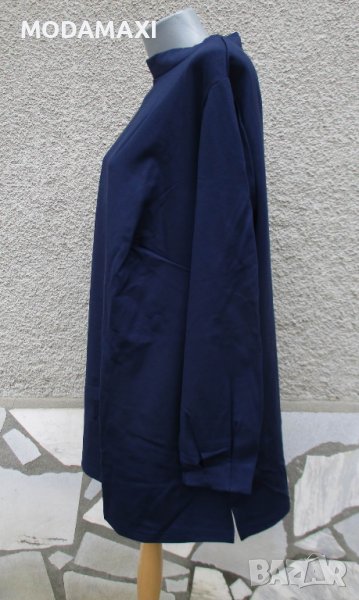 Туника за едра дама, от силно еластично и плътно трико, в тъмно син цвя