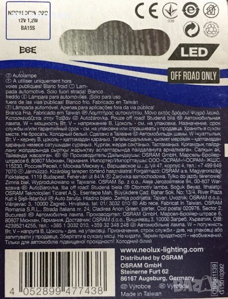 Светодиодна (LED) крушка NEOLUX(by OSRAM), заместваща обикновена крушка 21 вата една светлина - P21W(BA15s)