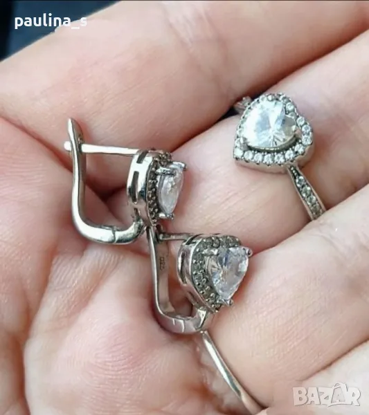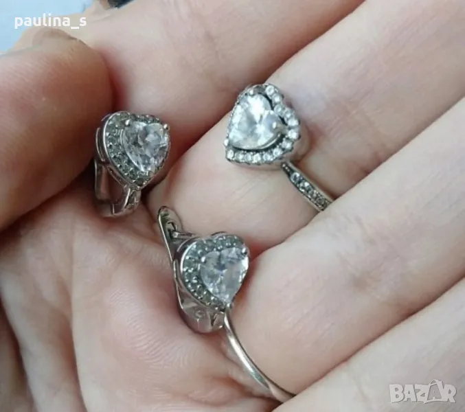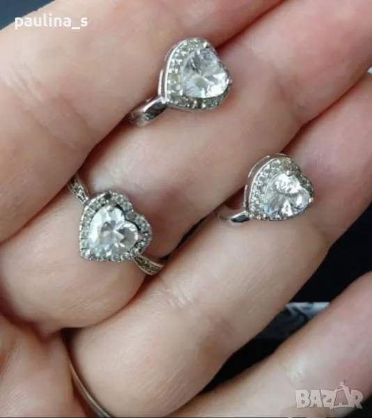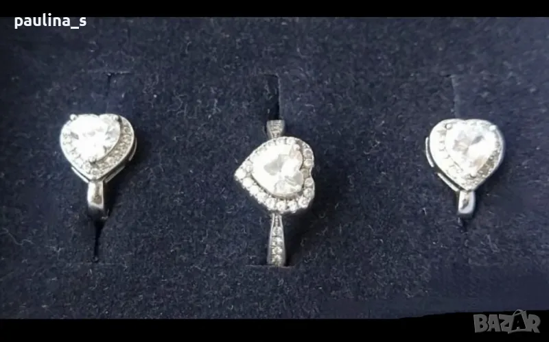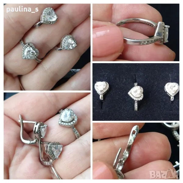 2️⃣ . Колаж / Сребърен комплект "Promise" / "Обещание", със сърца от висок клас циркони - ААА. Сребро проба 925 и печат на ювелира. Цената е крайна 69,99лв / 35 евро. Много красиви годежни бижута, Комплект - "Promise" / "Обещание", модел Принцеса, на