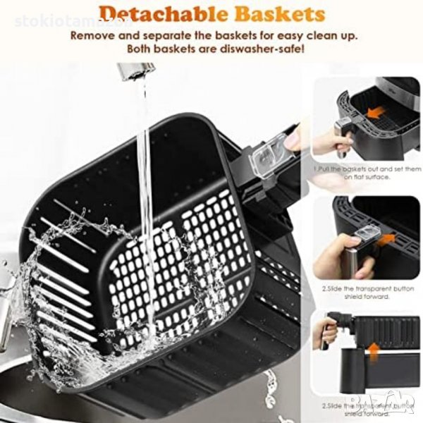 Фритюрникът може лесно да се изключи от вътрешната кошница чрез натискане на бутона, което улеснява изваждането на храната и което може да бъде по-добре изолирано при готвене на храната. Донесете здравословна и вкусна храна на вас и вашето семейство.