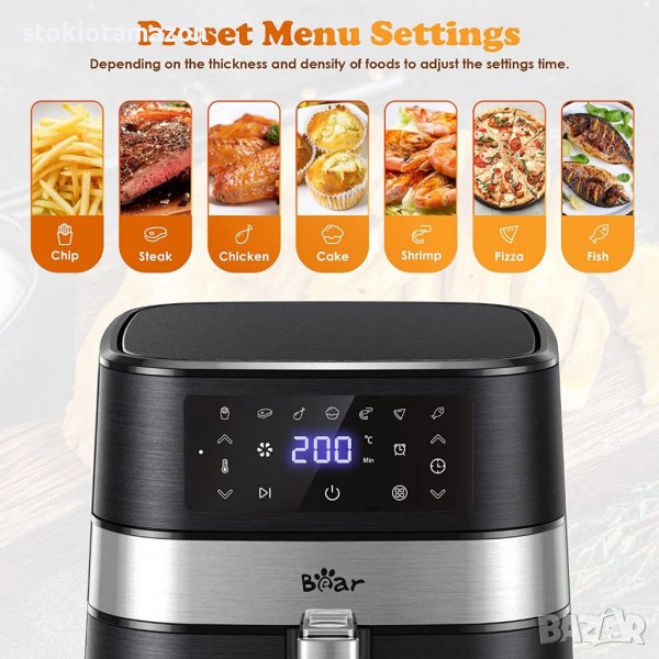 Air fryer BEAR 5,5 л с 360° бърза циркулация на горещ въздух, 1700 W