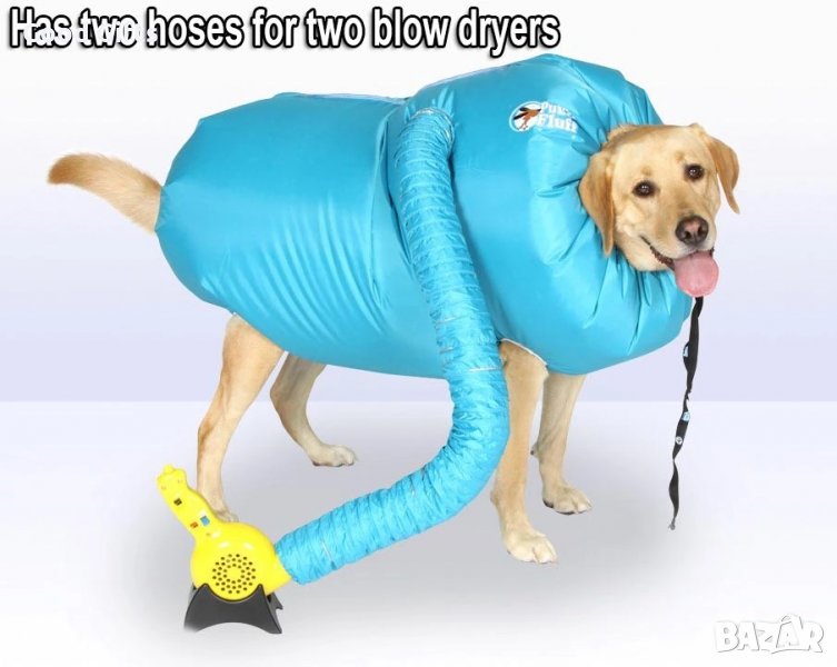 Облечете сушилнята Dog Dryer на вашето куче и доближете сешоара до отвора на гъвкавата връзка. Изчакайте няколко минути докато козината на вашият любимец стане мека и пухкава.