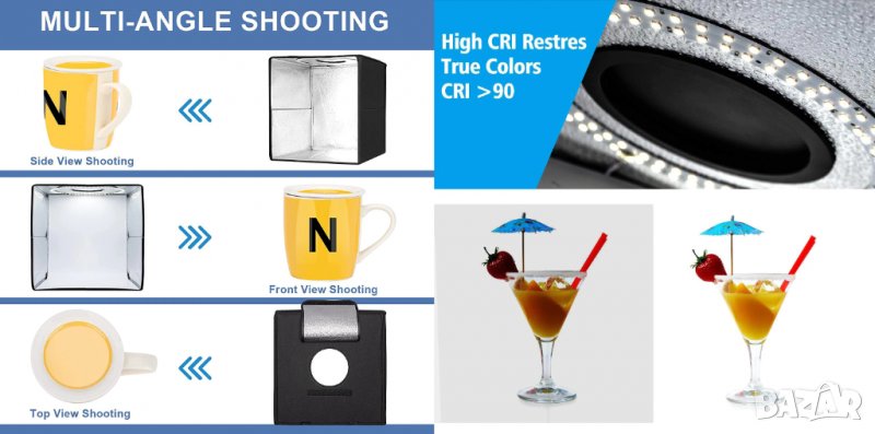 Палатка за продуктова фотография 30см., снимка 1 - Светкавици, студийно осветление - 38751477 Палатка за продуктова фотография 30см., снимка 2 - Светкавици, студийно осветление - 38751477 1/2