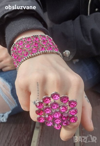 Внушителен моден луксозен комплект пръстен и гривна оригинален размер. Изключителен блясък.