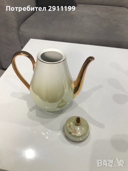 Кана от порцелан с нарисувани цветя и златисти окраски. С печат! Висока е 23 см с капачето. Има едва забележими следи от употреба. Моля вижте снимките за повече детайли. Идеална за декорация, употреба, подарък или колекция. За още красиви предмети може да разгледате и другите ми обяви.