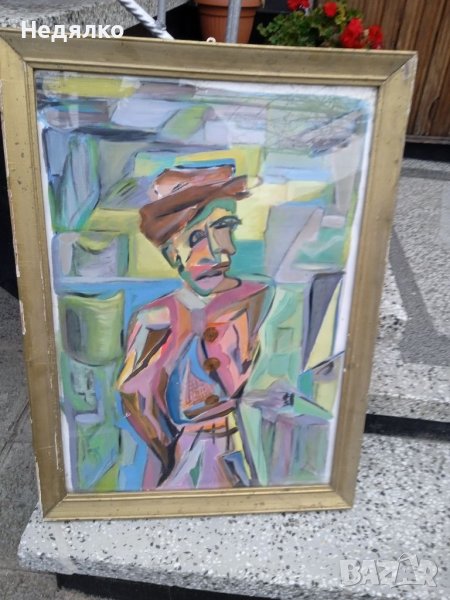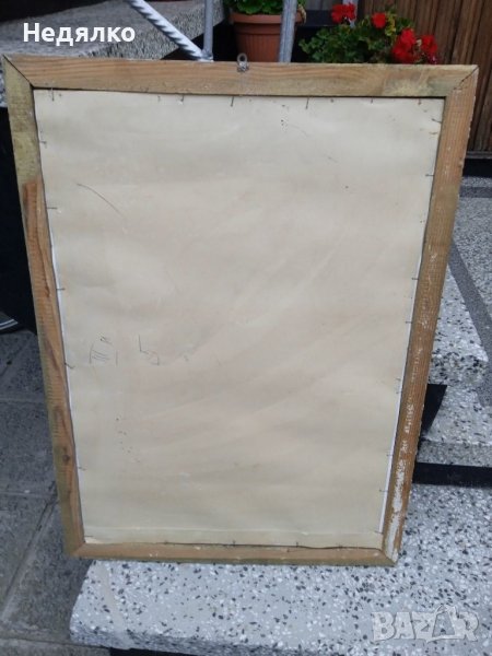 Маслени бои на луксозна дебела хартия на карета,стара рамка,под стъкло,не подписана, неизвестен автор.Интересна творба с размери,78х57 с рамка и 70х50 е само картината.