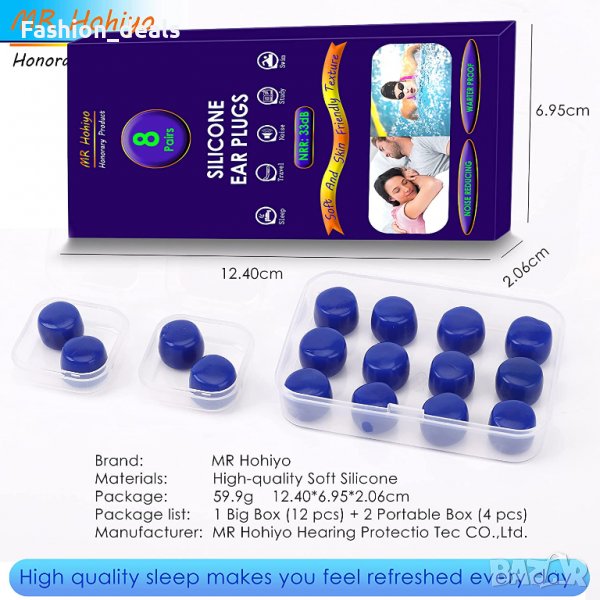 Шумопотискащите тапи за уши са проектирани да блокират външен звук. Направени от висококачествен силиконов материал, който е щадящ кожата и нетоксичен. Меки, гъвкави и пластични, осигуряват удобно прилягане за всеки размер и форма на ухото, без да стърчат.