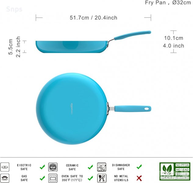 Незалепващ керамичен тиган, 31,7 см, тюркоазен