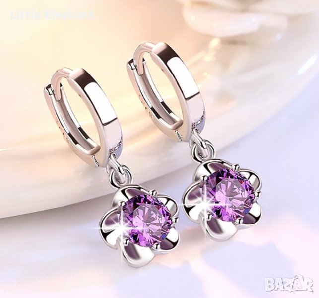 Сребърни висящи обеци цветя,колекция"Flowers",purple/нови → Обява 38765439