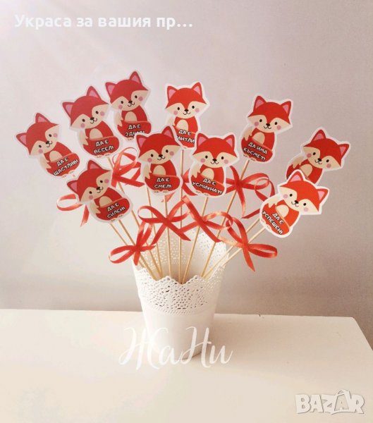 Топери лисичка с пожелания за орисане на бебето на бебешка погача , снимка 1 - Други - 38766462 Топери лисичка с пожелания за орисане на бебето на бебешка погача , снимка 2 - Други - 38766462 1/2
