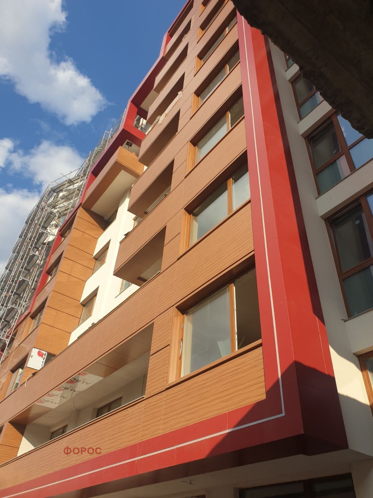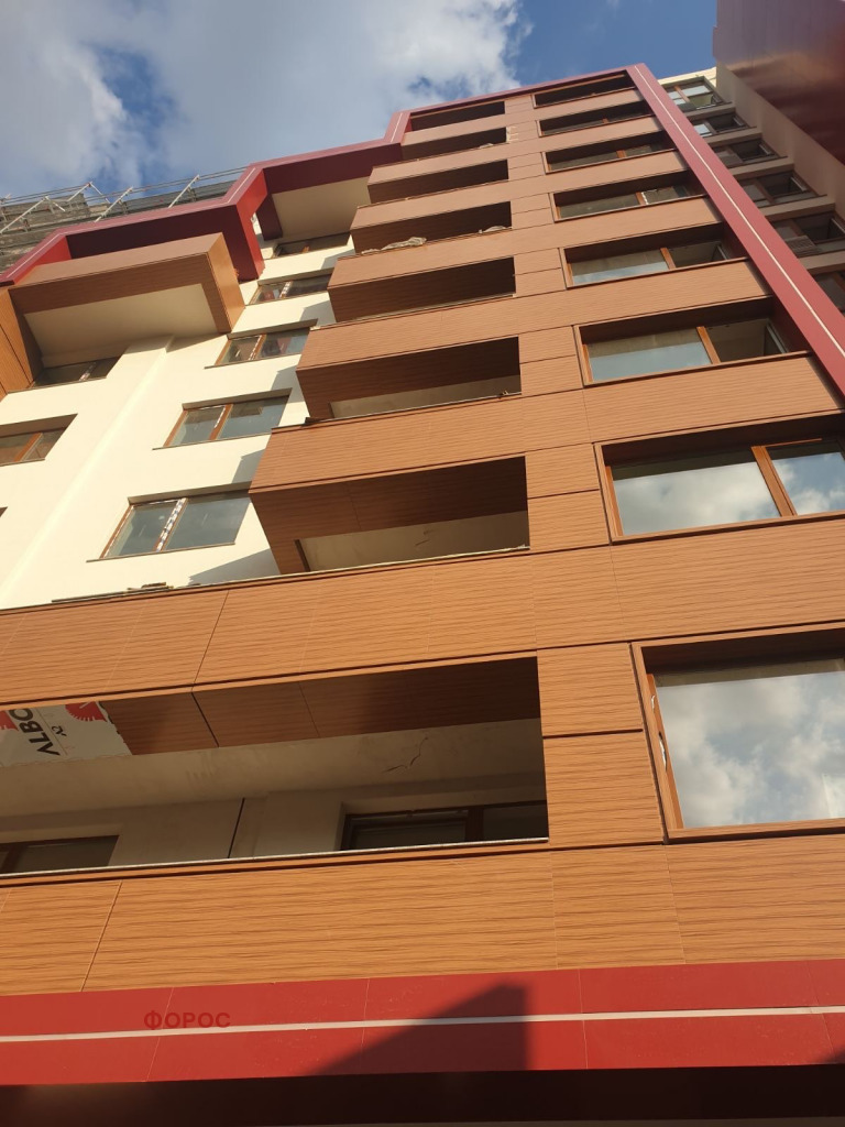 Красива, качествена и трайна фасада - еталбонд и HPL. Ще има и цветна мазилка БАУМИТ .