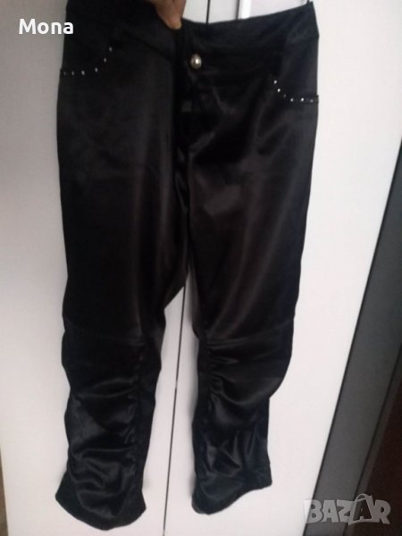 Сатенен панталон, размер С-ХС с набрани крачоли и дължина 7/8. Прозрачна блузка и кокетна тениска. Всичко е на обща цена 5 лв. Изпращам с преглед.