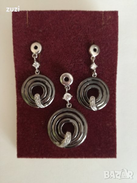Сребърен комплект с цирконий , обеци и висулка . Сребро проба 925., снимка 1 - Бижутерийни комплекти - 38768371 Сребърен комплект с цирконий , обеци и висулка . Сребро проба 925., снимка 2 - Бижутерийни комплекти - 38768371 1/2