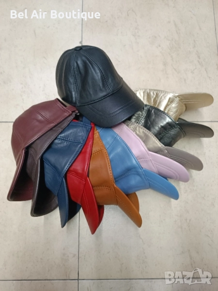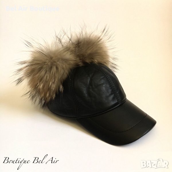 Кожена шапка с естествен пух, шапка с козирка → Обява 38773978