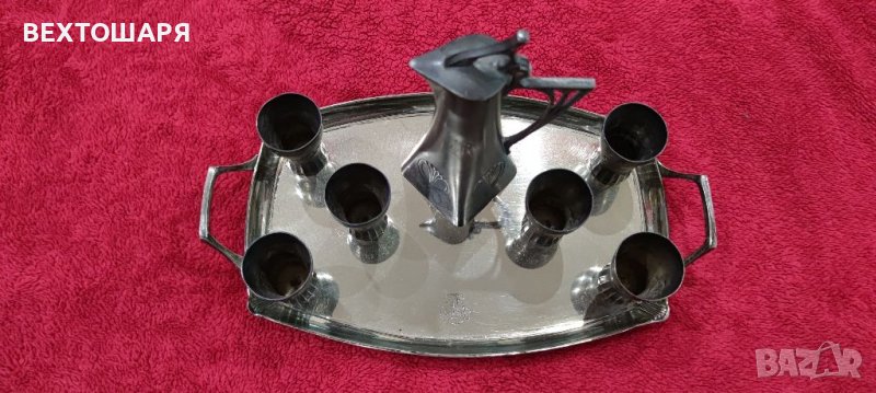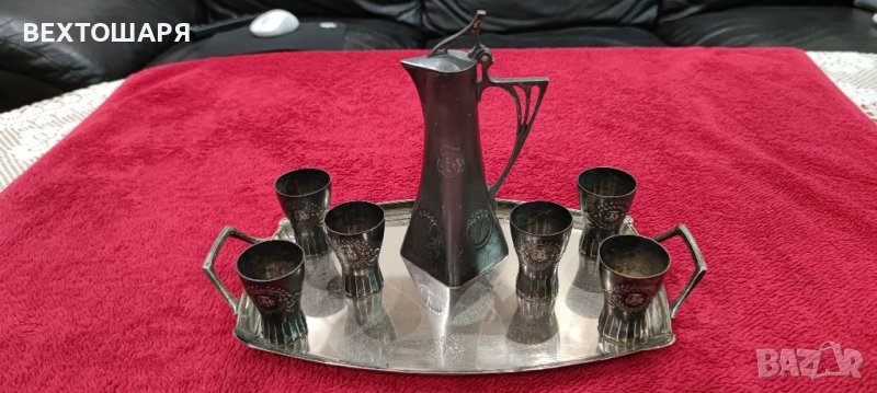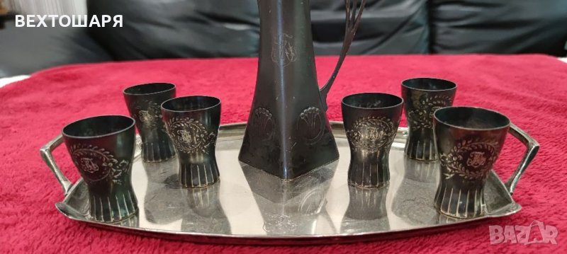 Старинен сребърен сервиз за ликьор / водка . Сервиза е поръчков , ръчно гравиран с инициали . Моля разгледайте и другите ми предложения .