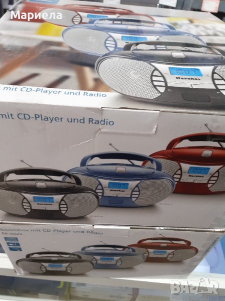 Съдържание на кутията: Karcher RR 5025 Boombox в синьо, захранващ кабел, ръководство за употреба (DE/EN)