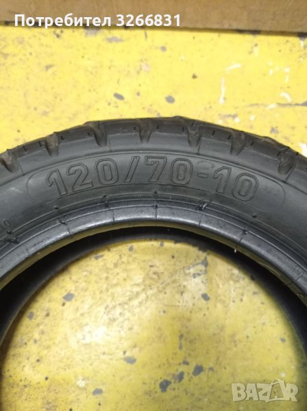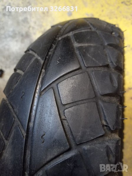 Гумата е в много добро състояние. Има много хубав грайфер. Размери 120/70-10 или 3.50-10. Може и бартер за ретро мотоциклети или части за такива с доплащане!