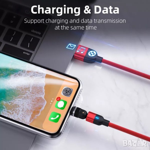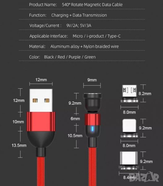 ✨540° Бързо магнитно зарядно 3А, магнитен кабел micro USB, Type C, i-phone трансфер на данни 480Mbps → Обява 38782029