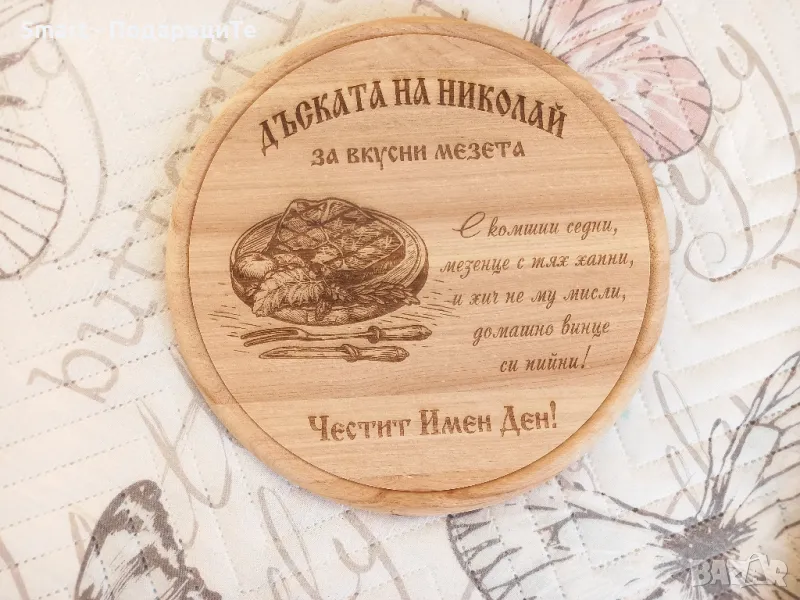 Подарък гравирана дъска за Никулден - чаши и други → Обява 38783707