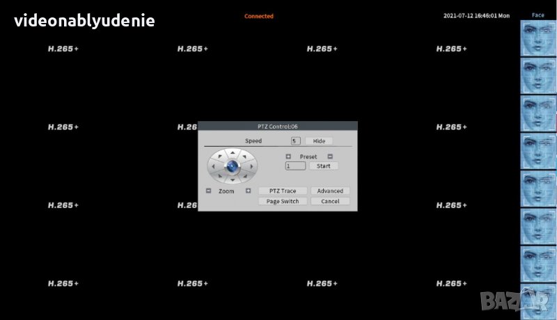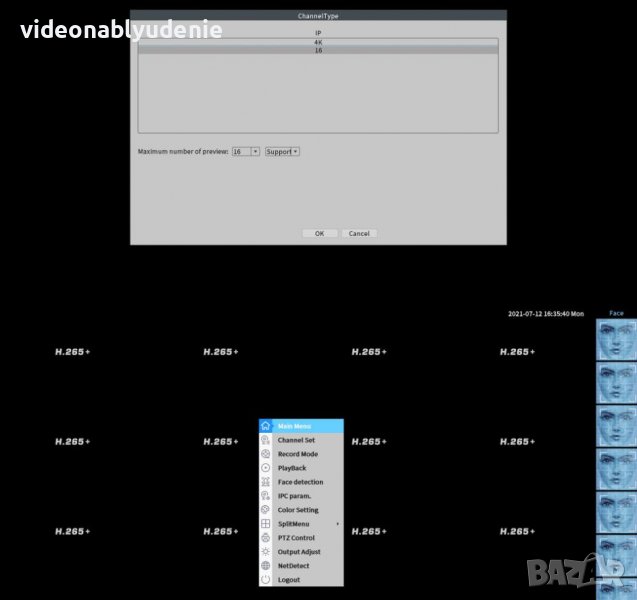 Разпознаване на човешко лице (Faces detection): Да (камерата включена към рекордера, също трябва да поддържа тази функция и трябва да работи с Netip протокола)