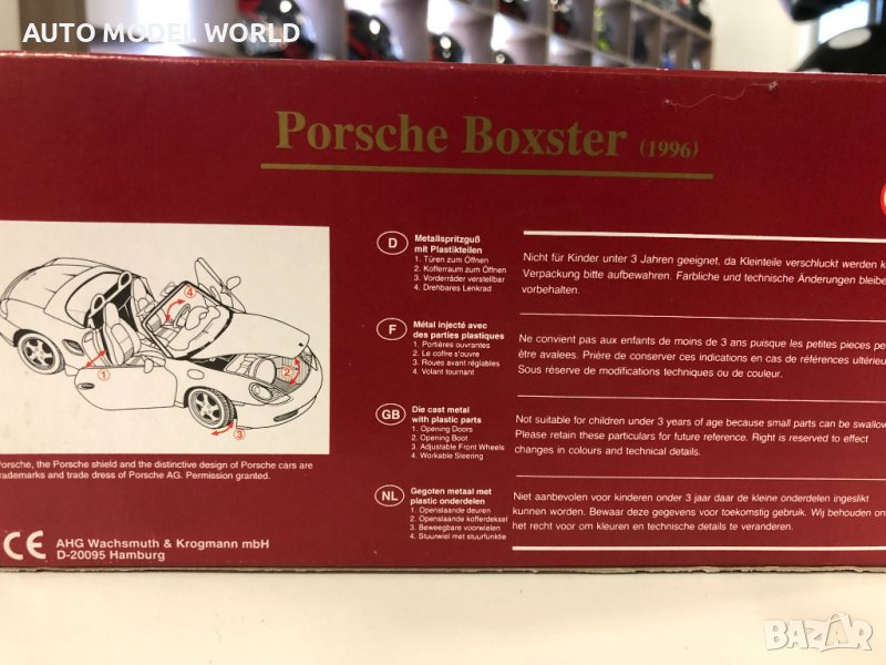 Метална колекционерска количка PORSCHE BOXTER 1996г.1:24 НОВА → Обява 38786742